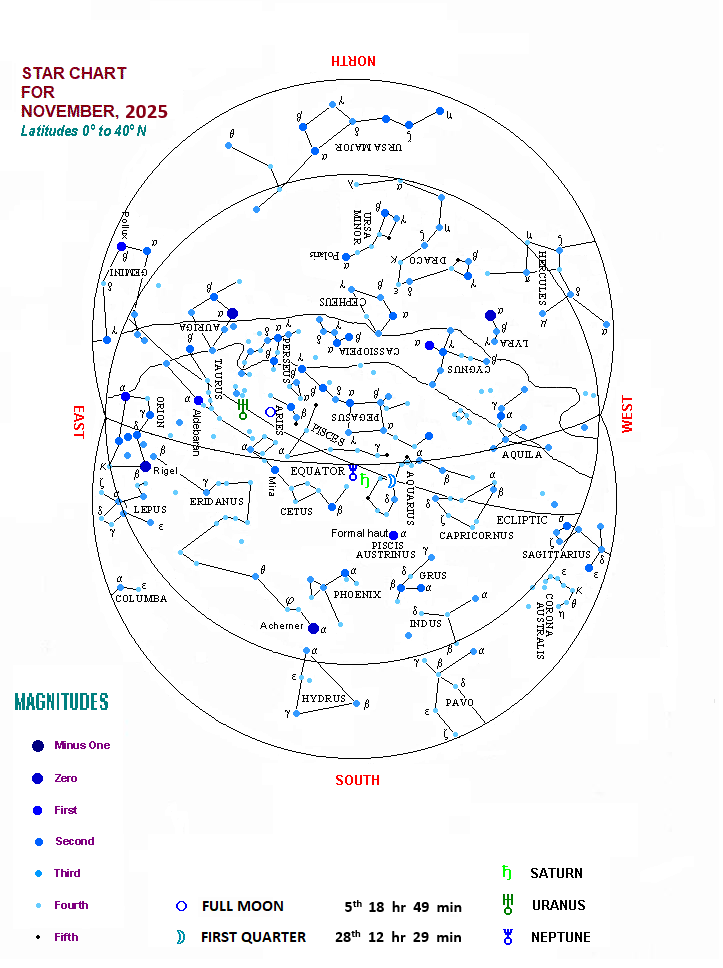 Sky Chart For The Month of November, 2025