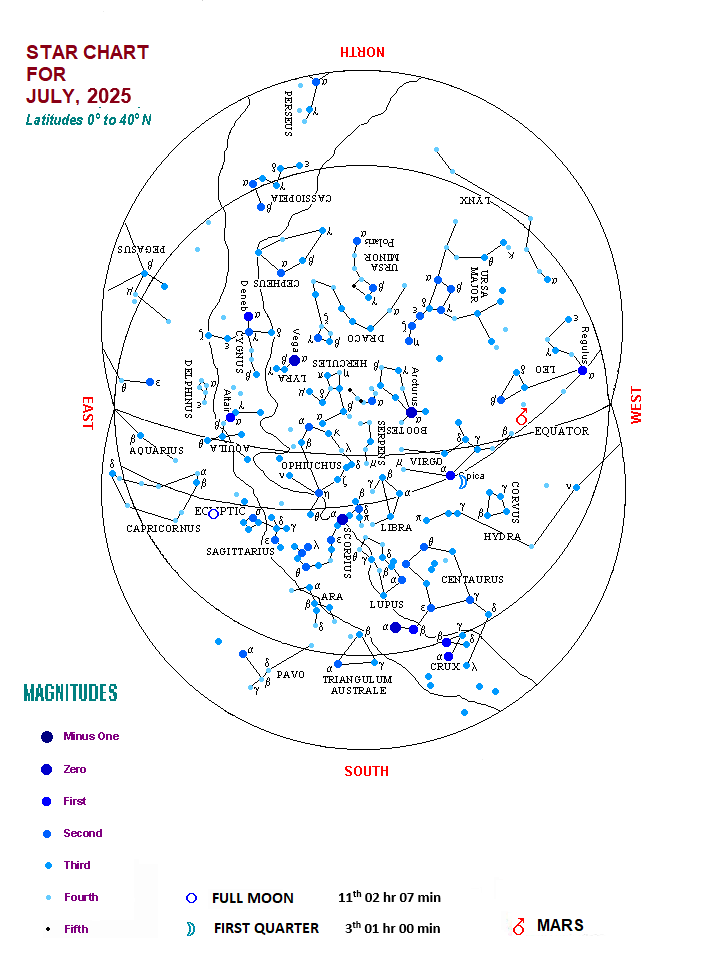 Sky Chart For The Month of July, 2025