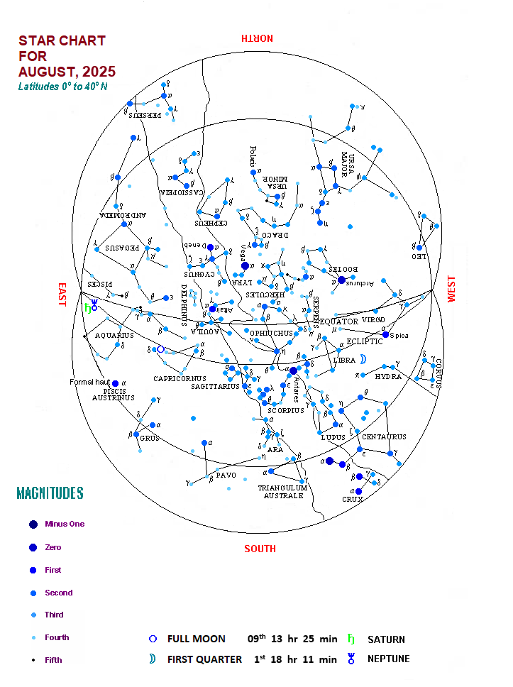 Sky Chart For The Month of August, 2025 Â