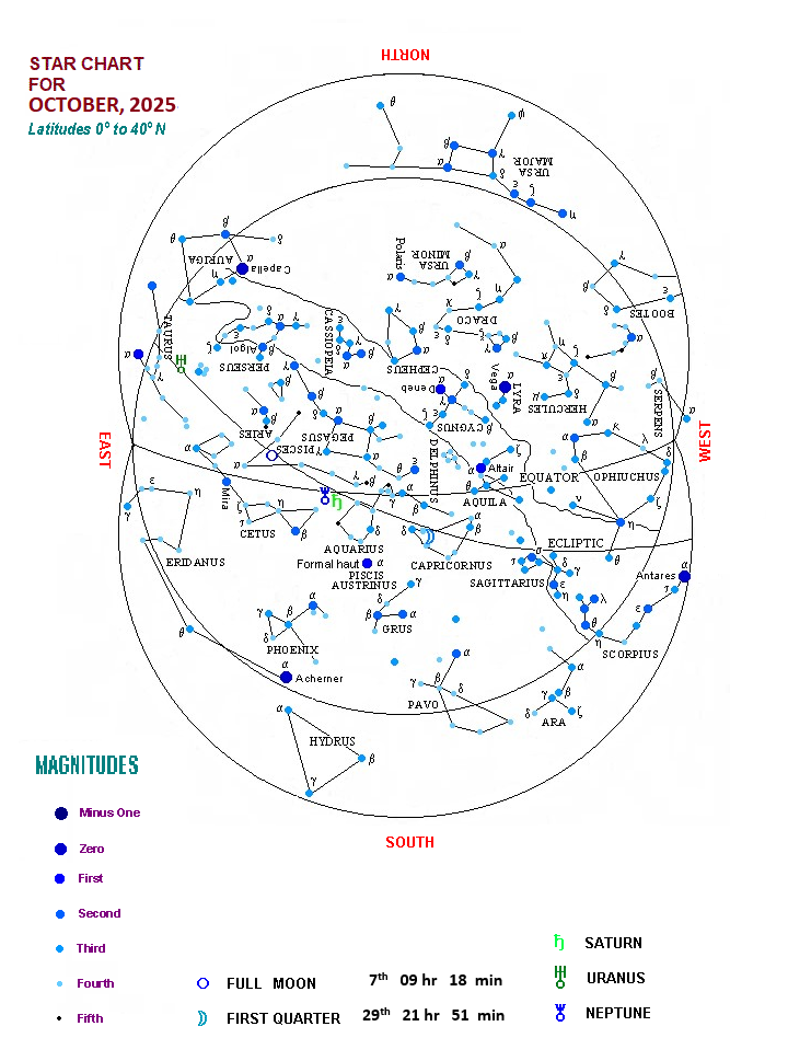 Sky Chart For The Month of October, 2025